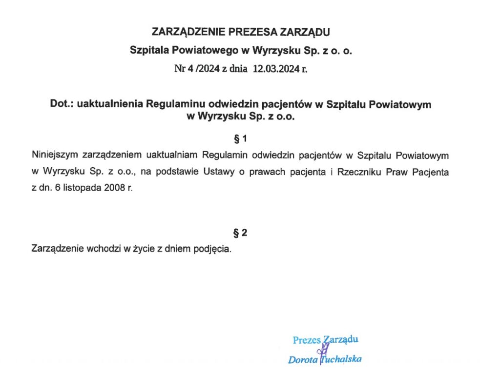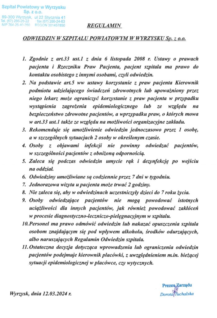 Regulamin odwiedzin pacjentów Home Regulamin odwiedzin pacjentów Zgodnie z ustawą o prawach pacjenta i Rzeczniku Praw Pacjenta.