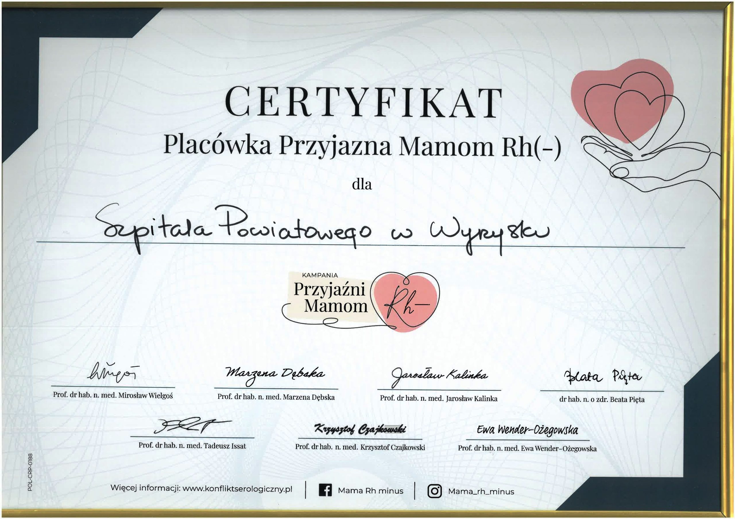 - Szpital w Wyrzysku – „Placówka Przyjazna Mamom Rh–”